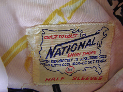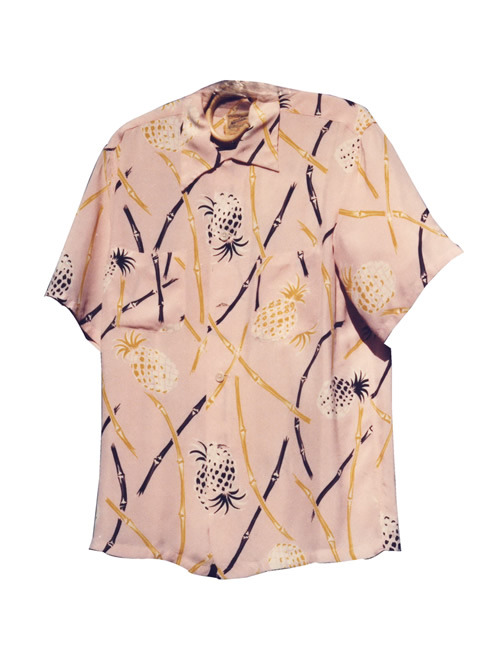 Late 40’s rayon pineapple print with a rare pink background. Made in California. ‘Schiffer’ page 109. Manufactured By XXXX.